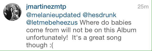 A song about teen preganancy Bombs on Monday a song that was actually leaked its suppouse to be about the town getting bombed Probably the end of the album Schizo a. Playing via Spotify Playing via YouTube Playback options. Where Do Babies Come From is an unreleased song by Melanie Martinez.